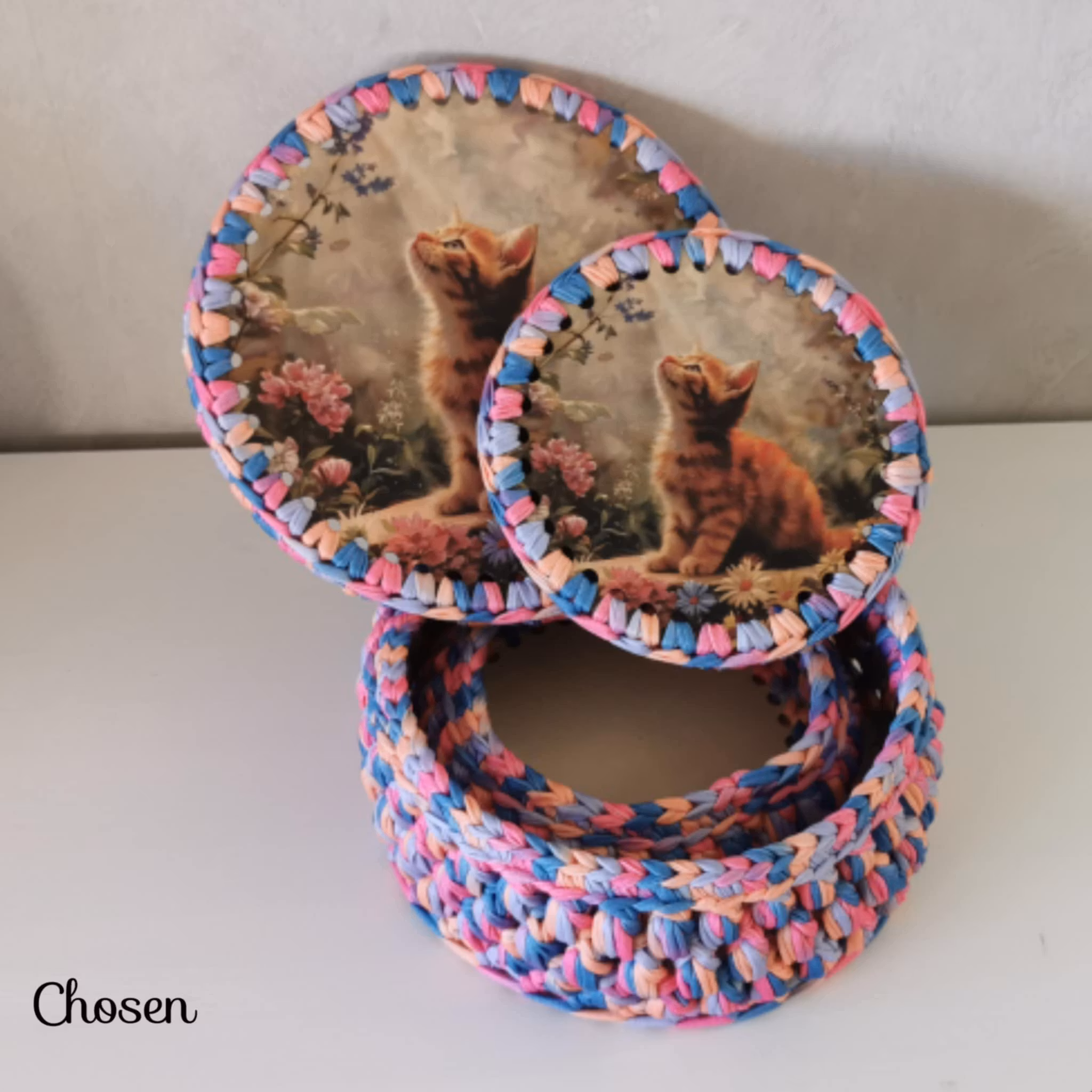 För dig som vill virka själv finns bottnar & lock till försäljning: Korgbotten/lock - Tillbehör - RutorDam Hobby