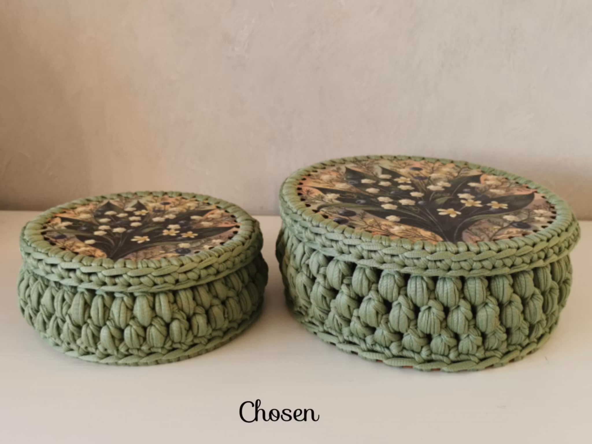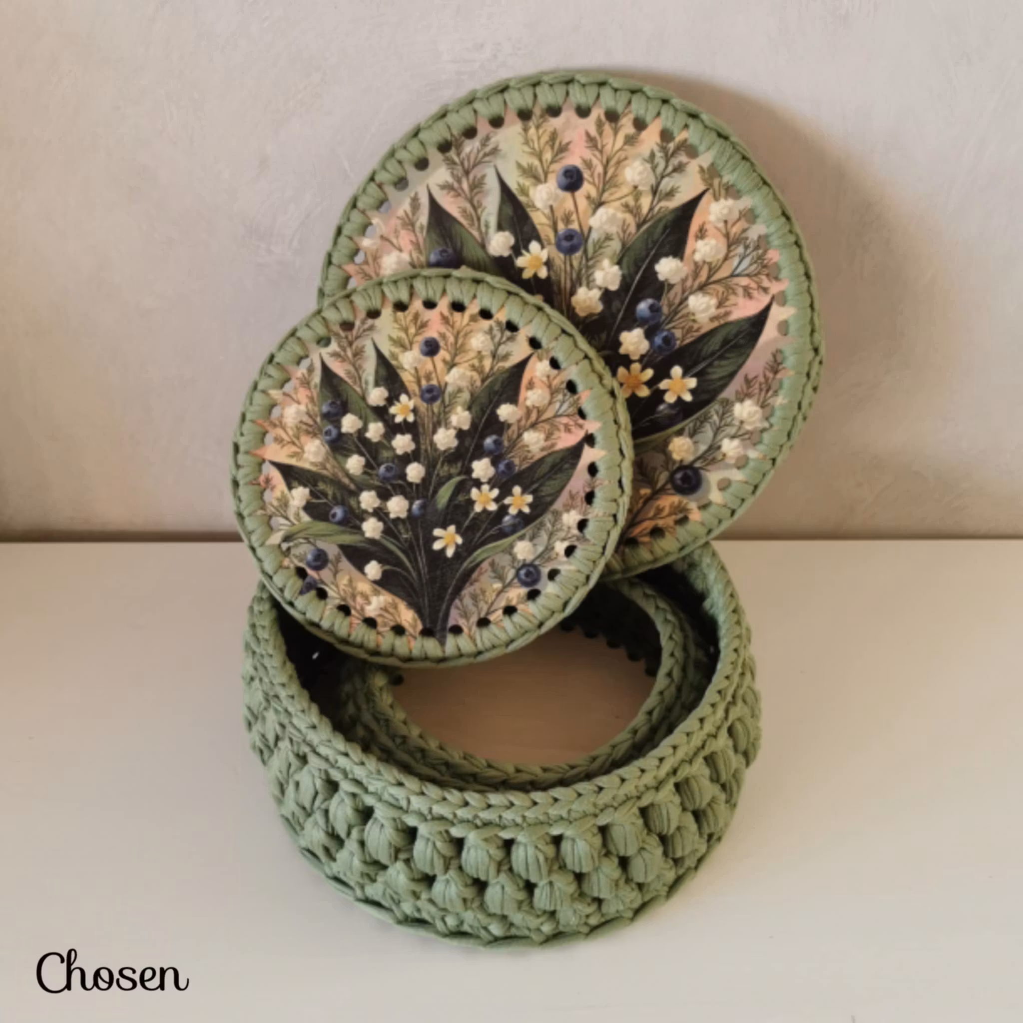 För dig som vill virka själv finns bottnar & lock till försäljning: Korgbotten/lock - Tillbehör - RutorDam Hobby