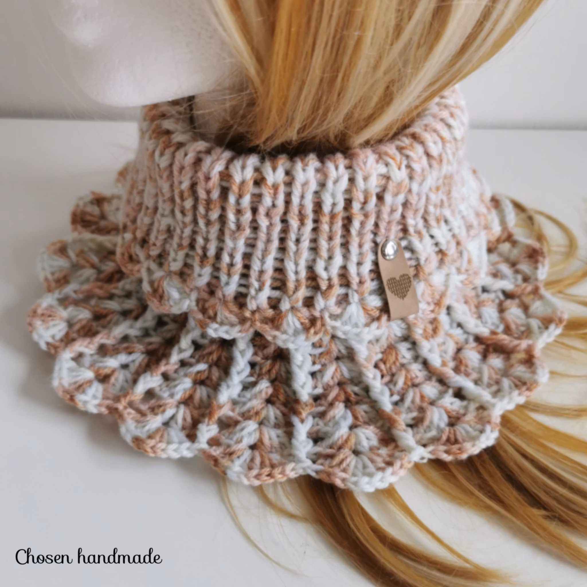 Värmande halskrage med reliefmönster som piffar upp och blir ett vackert blickfång.