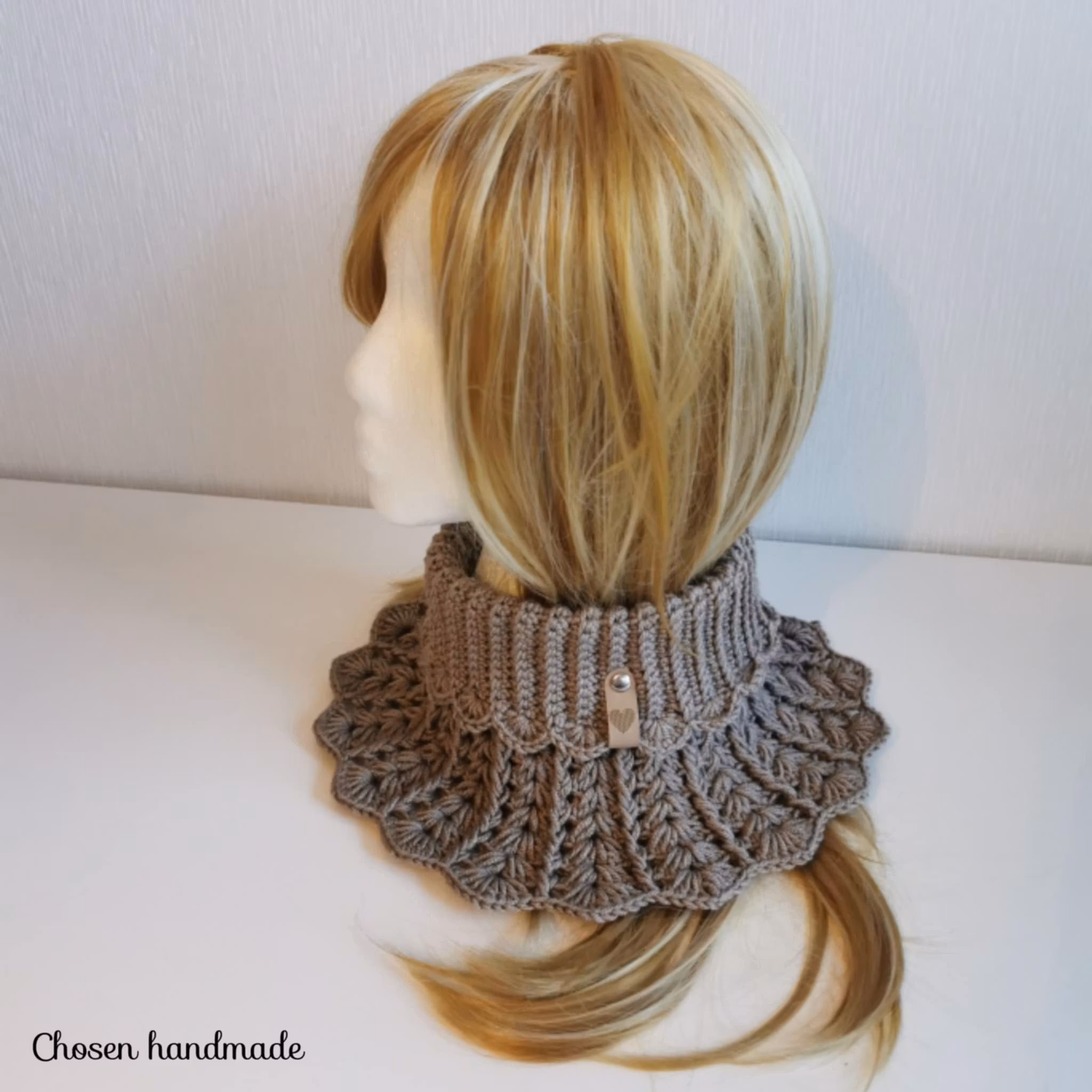 Värmande halskrage med reliefmönster som piffar upp och blir ett vackert blickfång.