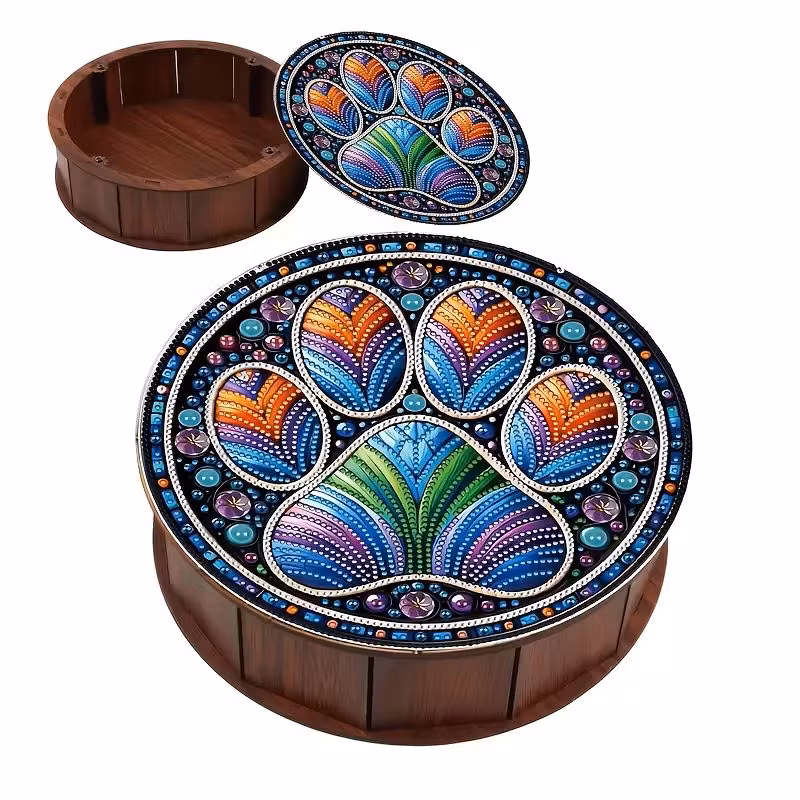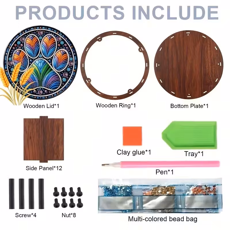 Motivet är tryckt på locket och man pärlar detta med vackra crystal-pärlor i olika former och storlekar.
