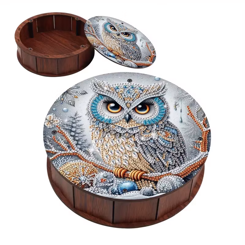 Motivet är tryckt på locket och man pärlar detta med vackra crystal-pärlor i olika former och storlekar.
