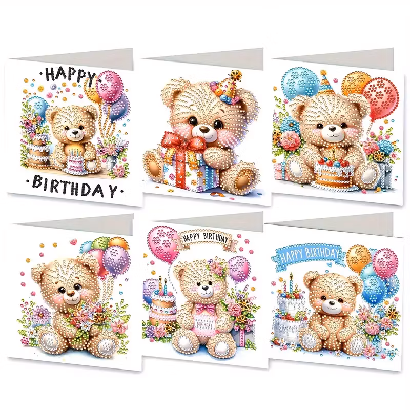 Bakgrunden är tryckt på kortet och man smyckar motiven med underbara diamanter.